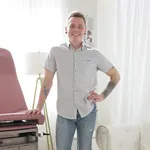 Dr JJ Lake gets some interesting patients in his practice and every once in a while, one with a big ole' crush on him. The signs are always there, the patient comes in with the smallest symptoms or some made up altogether. Today was one of those with a nice boy named Aiden complaining about something he calls "anal clenching." Dr Lake is no fool but this boy is cute so after hearing the lame excuse to come in again He just gets up to lock the door to be able to play with Aiden the way he really wants. Slipping on a glove and some lube, Dr Lake quickly finds from the whorish moans coming from Aiden that yes this is the treatment he is looking for. A finger progresses to a tongue and then of course to a fat cock. By then Aiden has thrown all pretense to the wind and his legs spread wide open. Once Dr Lake leaves his huge load all over Aiden's face he knows the solution will be more cock, with the insurance picking up the tab.